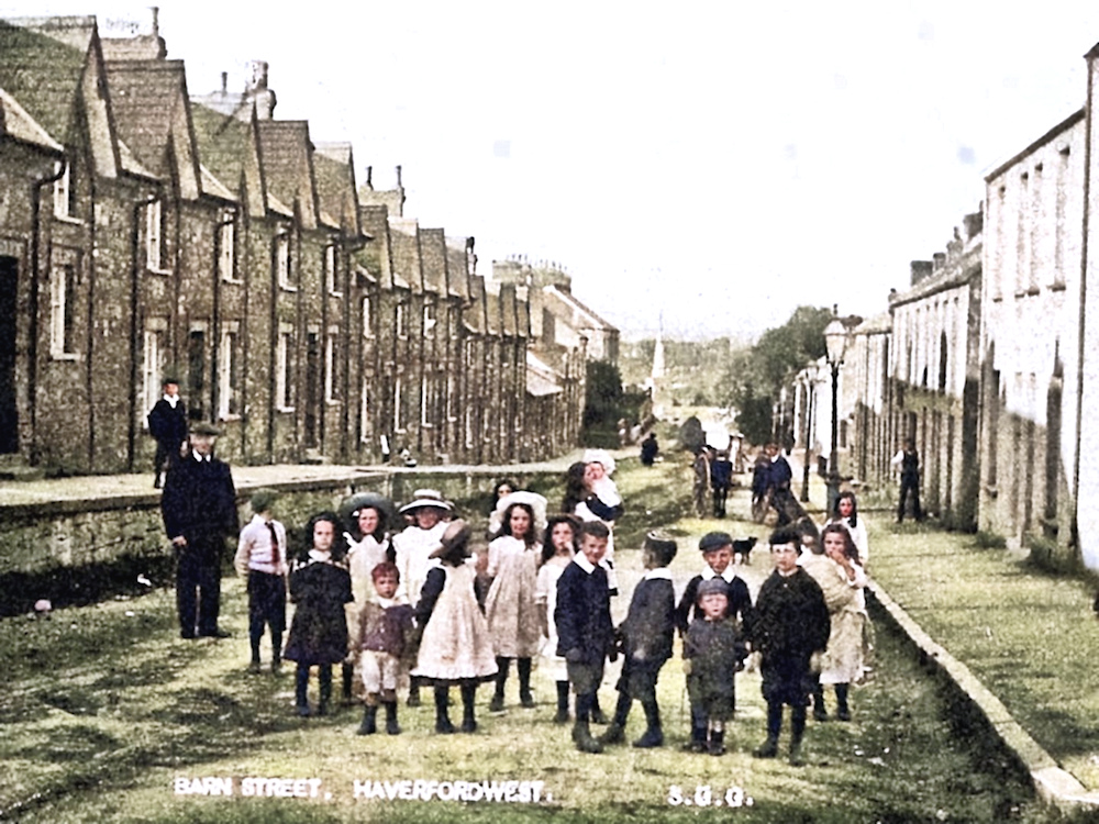 The view seems almost unchanged after more than a century although you would certainly not find a group of children standing in the middle of the road today!