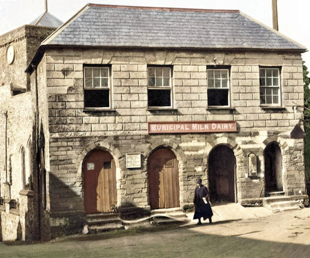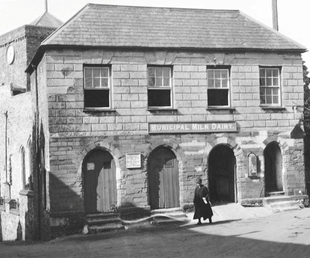 By the beginning of the 20th century the ground floor was a municipal dairy and the upper floor with its high ceiling was used to store council records. During the Second World War it was used to billet troops after which it remained empty until it was demolished.