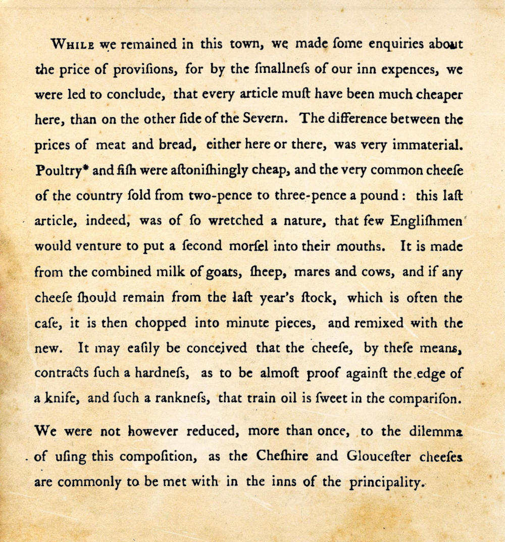 He published an account of his trips in the book ‘A Tour Through Monmouthshire and Wales’ including several pages on his stay in Haverfordwest where he was impressed by the castle and by the low food prices but less than impressed by the quality of the local cheese on offer which he said tasted worse than train oil.
